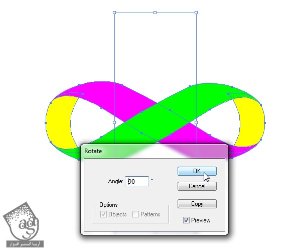 شکل های علامت بی نهایت رو انتخاب کرده و یک گرادیانت اعمال می کنیم. Angle رو روی 90 درجه قرار داده و Ok می زنیم.