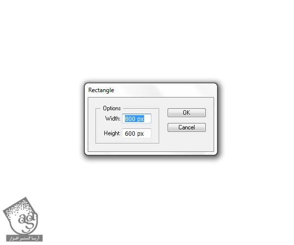 برای درست کرده پس زمینه، ابزار Rectangle رو برداشته و یک مستطیل 800 در 600 پیکسل رسم می کنیم.