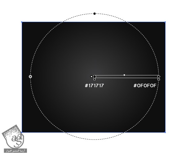 Radial Gradient زیر رو برای بیضی در نظر می گیریم. تنظیمات زیر رو بهش اختصاص میدیم.