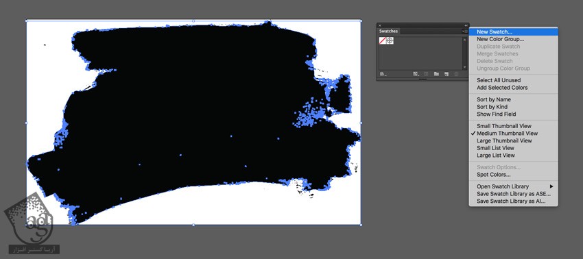 وارد پنل Swatches میشیم و New Color Swatch رو از منو انتخاب می کنیم.