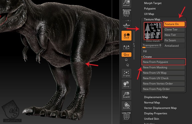 میریم سراغ Texture Map و دکمه Texture On رو انتخاب کرده و روی New From Polypaint کلیک می کنیم.