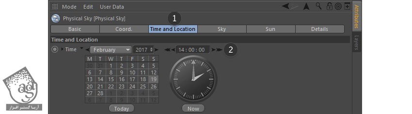 به این ترتیب، یک منوی جدید ظاهر میشه. تب Time and Location رو انتخاب کرده و زمان رو تنظیم می کنیم.