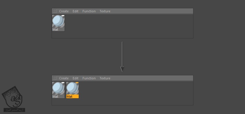 برای درست کردن متریال جدید می تونیم متریال قبلی رو Duplicate کنیم. برای این کار، Ctrl رو نگه داشته و متریال رو درگ می کنیم.