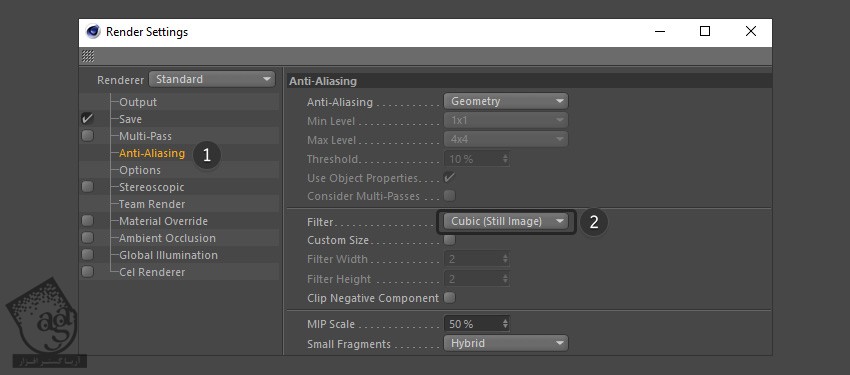 میریم سراغ تنظیمات Anti aliasing و Cubic (Still Image) رو از بخش Filter انتخاب می کنیم.