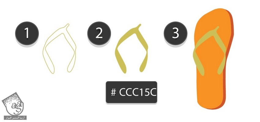 بندهای صندل رو رسم کرده و کد رنگی #ccc15c رو براش در نظر می گیریم.