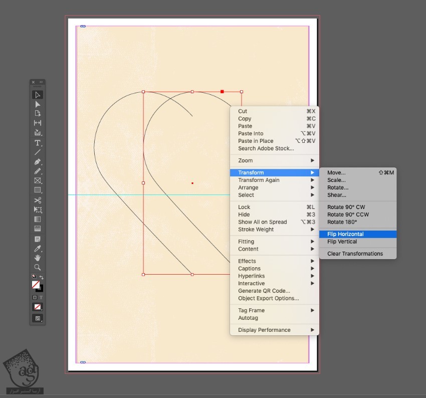 کلیک راست کرده و مسیر Transform > Flip Horizontal رو دنبال می کنیم.
