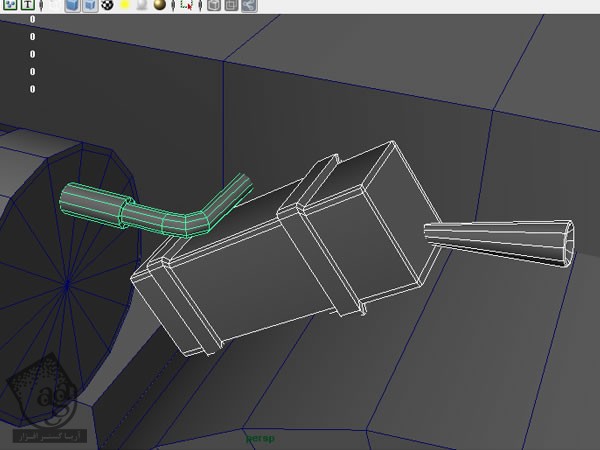 برای مدل سازی لوله کوچک، یک استوانه 12 وجهی درست کرده و سطوح اون رو اکسترود می کنیم. لبه های اضافه رو با ابزار Insert Edge Loop درست کرده و چند تا از سطوح رو اکسترود می کنیم.