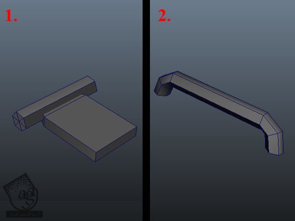 شکلی که می بینین رو با استفاده از استوانه و مکعب درست می کنیم. اون رو Extrude و Extend می کنیم. با استفاده از ابزار Insert Edeg Loop، لبه هایی رو اضافه می کنیم.