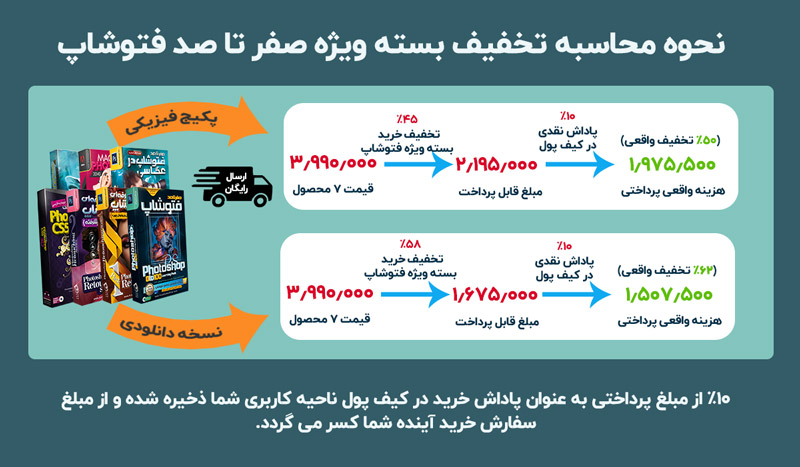 - هفت پکیج آموزشی فتوشاپ در یک بسته ویژه با تخفیف استثنایی!